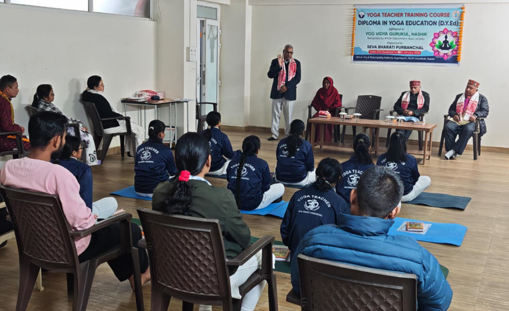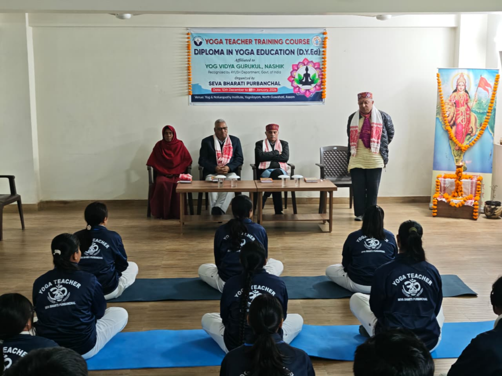 সেৱা ভাৰতী পূৰ্বাঞ্চলৰ উদ্যোগত, যোগ বিদ্যা গুৰুকুল, নাচিকৰ অনুমোদনত তথা ভাৰত চৰকাৰৰ আয়ুষ মন্ত্ৰালয়ৰ স্বীকৃতি প্ৰাপ্ত আৱাসিক যোগ শিক্ষক প্ৰশিক্ষণ বৰ্গটি ১০ ডিচেম্বৰৰ পৰা আৰম্ভ হৈ আজি উত্তৰ গুৱাহাটীস্থিত যোগ নিলয়মত,যোগ আৰু প্ৰাকৃতিক চিকিৎসা কেন্দ্ৰত গৰিমাময়ভাৱে সমাপ্ত হয়। সামৰণি অনুষ্ঠানত সেৱা ভাৰতী পূৰ্বাঞ্চলৰ প্ৰান্ত যোগ প্ৰমুখ অৰূপ জ্যোতি দাসে আঁতধৰা অনুষ্ঠানত বন্তি প্ৰজ্বলনেৰে শুভাৰম্ভ কৰে মাতা নিৰ্ভয়া গিৰি জীয়ে।