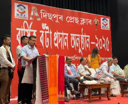 গুৱাহাটীৰ লোক নির্মাণ বিভাগৰ প্ৰশিক্ষণ কেন্দ্র প্রেক্ষা গৃহত অনুষ্ঠিত এক গাম্ভীর্যপূর্ণ অনুষ্ঠানত শ্রীযুত ধৰ্মেশ্বৰ কোৱৰে এই বঁটা প্ৰদান কৰে।