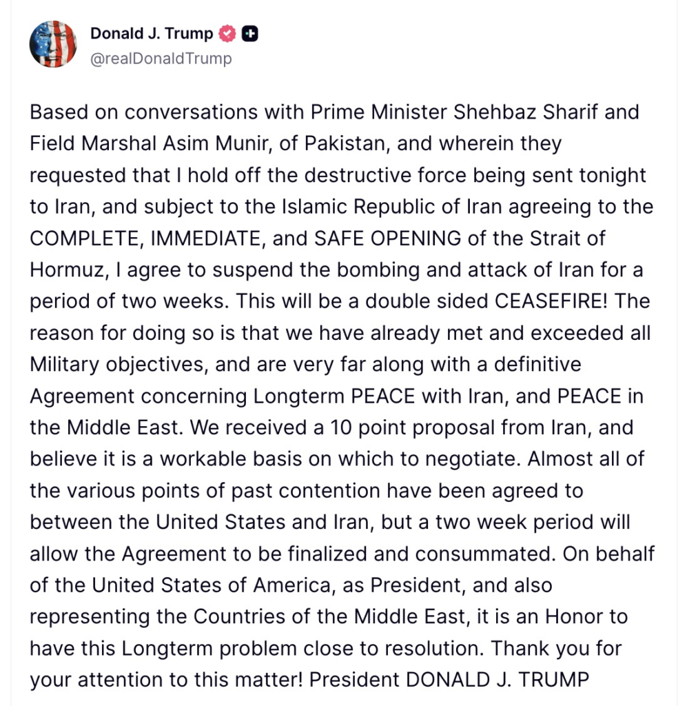 আমেৰিকা আৰু ইৰানৰ মাজত যুদ্ধবিৰতি ঘোষণা।